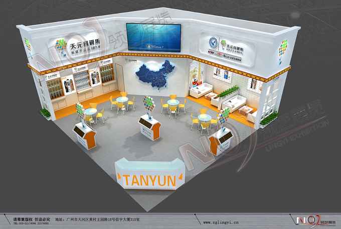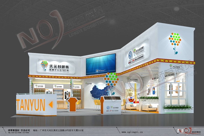 契合天元的品牌形象和產(chǎn)品特性,采用矩形結(jié)構(gòu),再搭配燈具燈光的效果,襯托出展位高端、時(shí)尚的氛圍,突出一種現(xiàn)代、大氣的時(shí)尚品味。