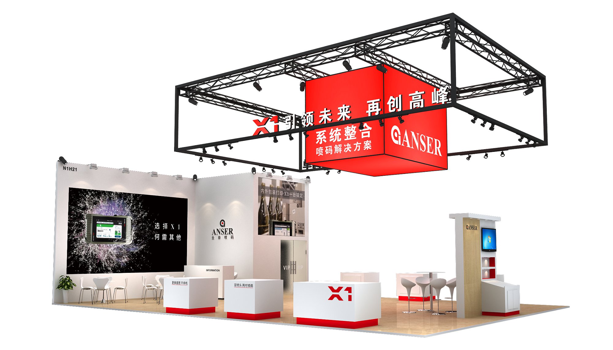 契合金泰噴碼的品牌形象和產(chǎn)品特性,采用開放式結(jié)構(gòu),再搭配燈具燈光的效果,襯托出展位大氣、豪華的氛圍,突出一種簡約、時(shí)尚的品味。