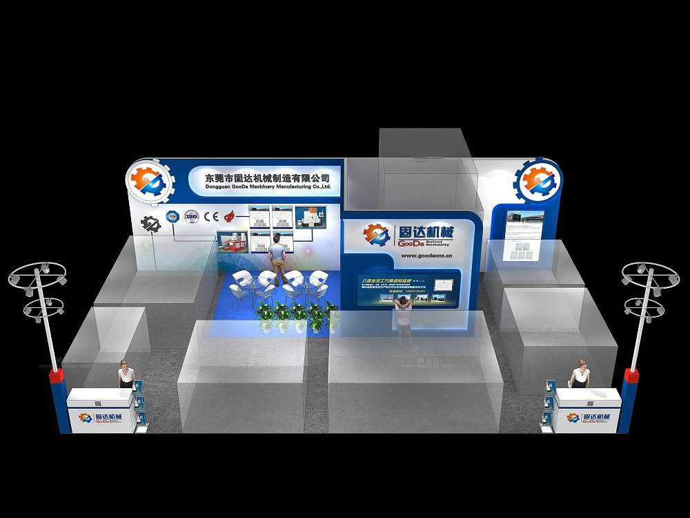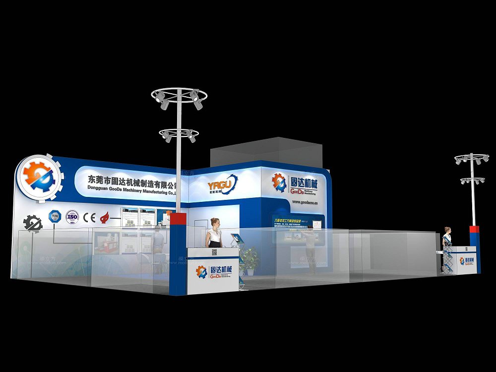 契合固達(dá)機(jī)械的品牌形象和產(chǎn)品特性,采用開放型結(jié)構(gòu),再搭配燈具燈光的效果,襯托出展位大氣、豪華的氛圍,突出一種簡(jiǎn)約、時(shí)尚的品味。