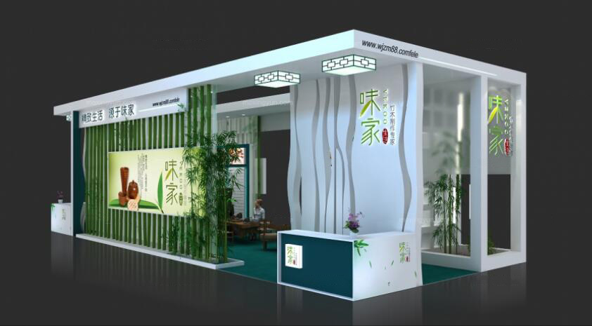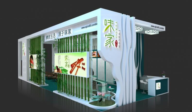 契合味家的品牌形象和產(chǎn)品特性,采用矩形結(jié)構(gòu),再搭配燈具燈光的效果,襯托出展位大氣、豪華的氛圍,突出一種簡約、時尚的品味。