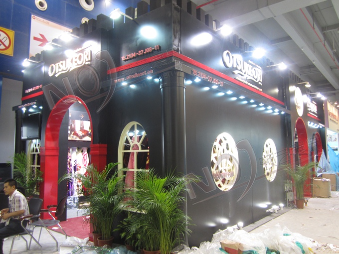 巧妙的運(yùn)用紅色、黑色作搭配,著重突出品牌和產(chǎn)品的展示,使整個展位時尚新穎。