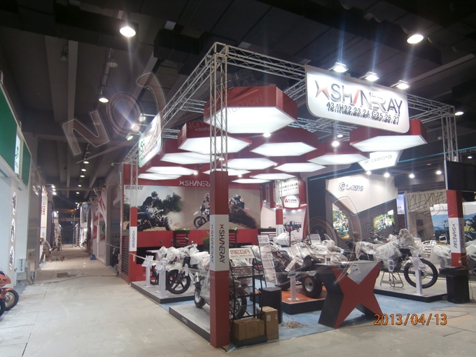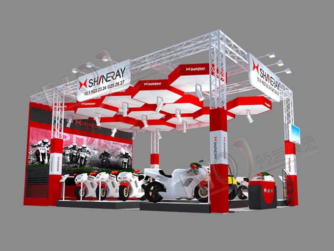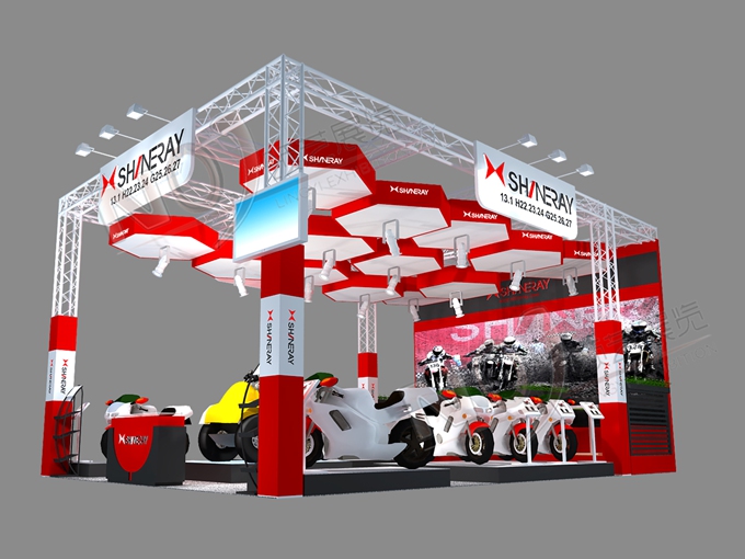 契合鑫源摩托的品牌形象和產(chǎn)品特性,采用矩形結(jié)構(gòu),再搭配燈具燈光的效果,襯托出展位簡(jiǎn)約、時(shí)尚的氛圍,突出一種現(xiàn)代、簡(jiǎn)約的時(shí)尚品味。