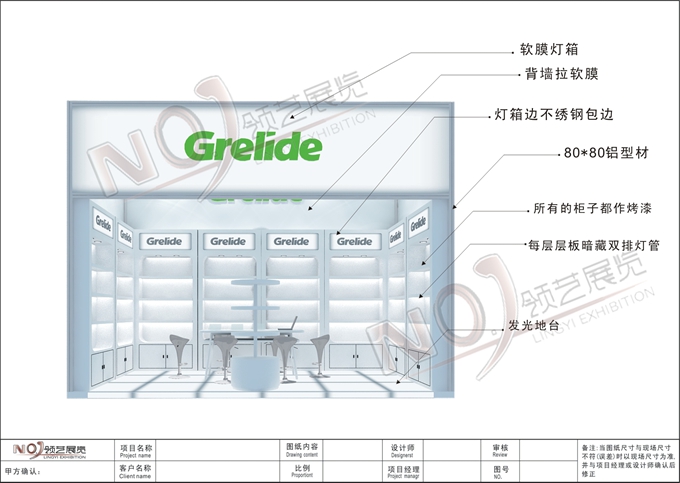 契合格來德的品牌形象和產(chǎn)品特性,采用框型結構,再搭配燈具燈光的效果,襯托出展位自由、簡約的氛圍,突出一種現(xiàn)代、舒適的時尚品味。