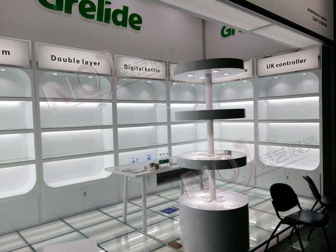 巧妙的運用綠色、白色做搭配,著重突出品牌和產(chǎn)品的展示,使整個展位時尚潮流、大方得體。