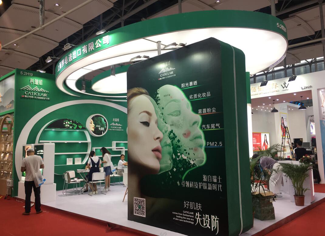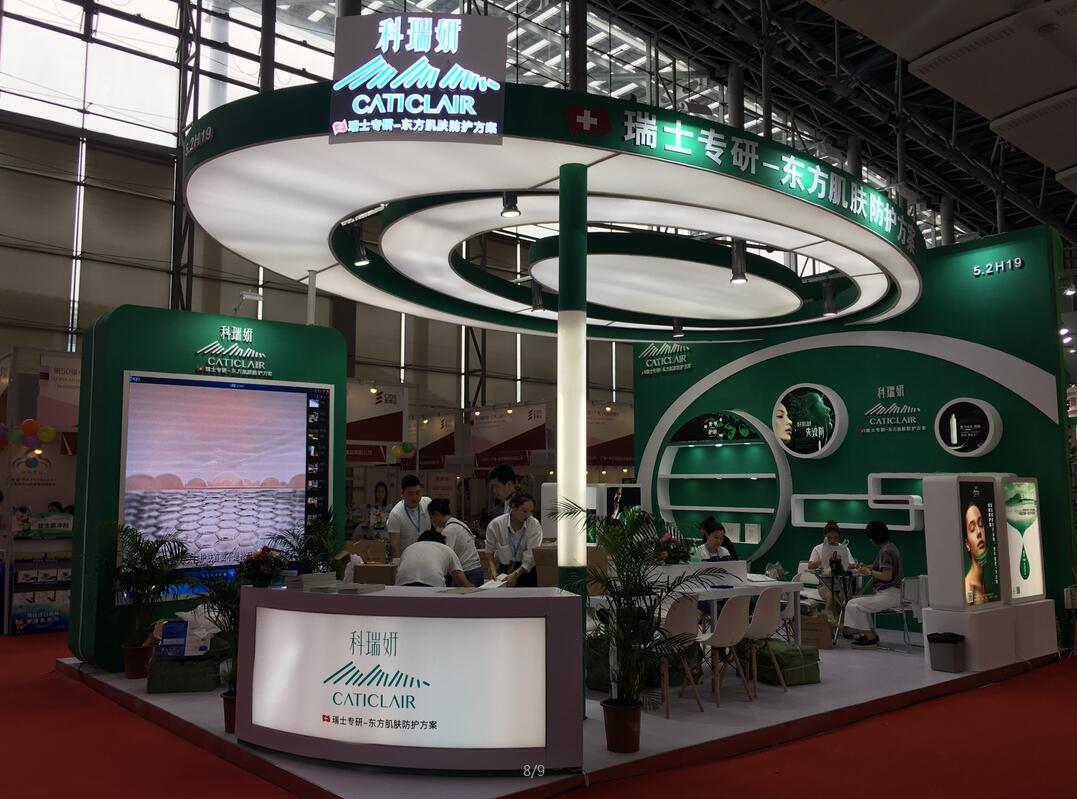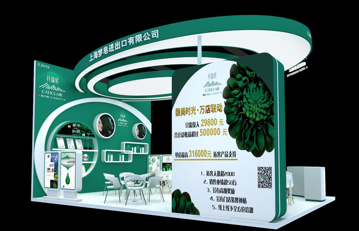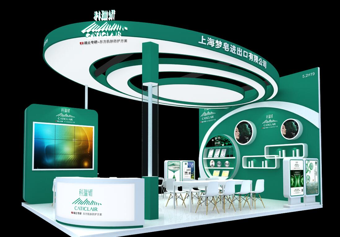 契合上海夢皂品牌形象和產(chǎn)品特性,利用天花造型,再搭配燈具燈光的效果,襯托出展位現(xiàn)代、突出一種現(xiàn)代、高端的時尚品味。