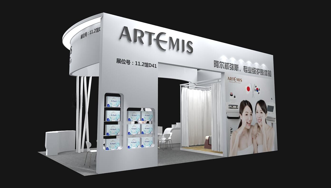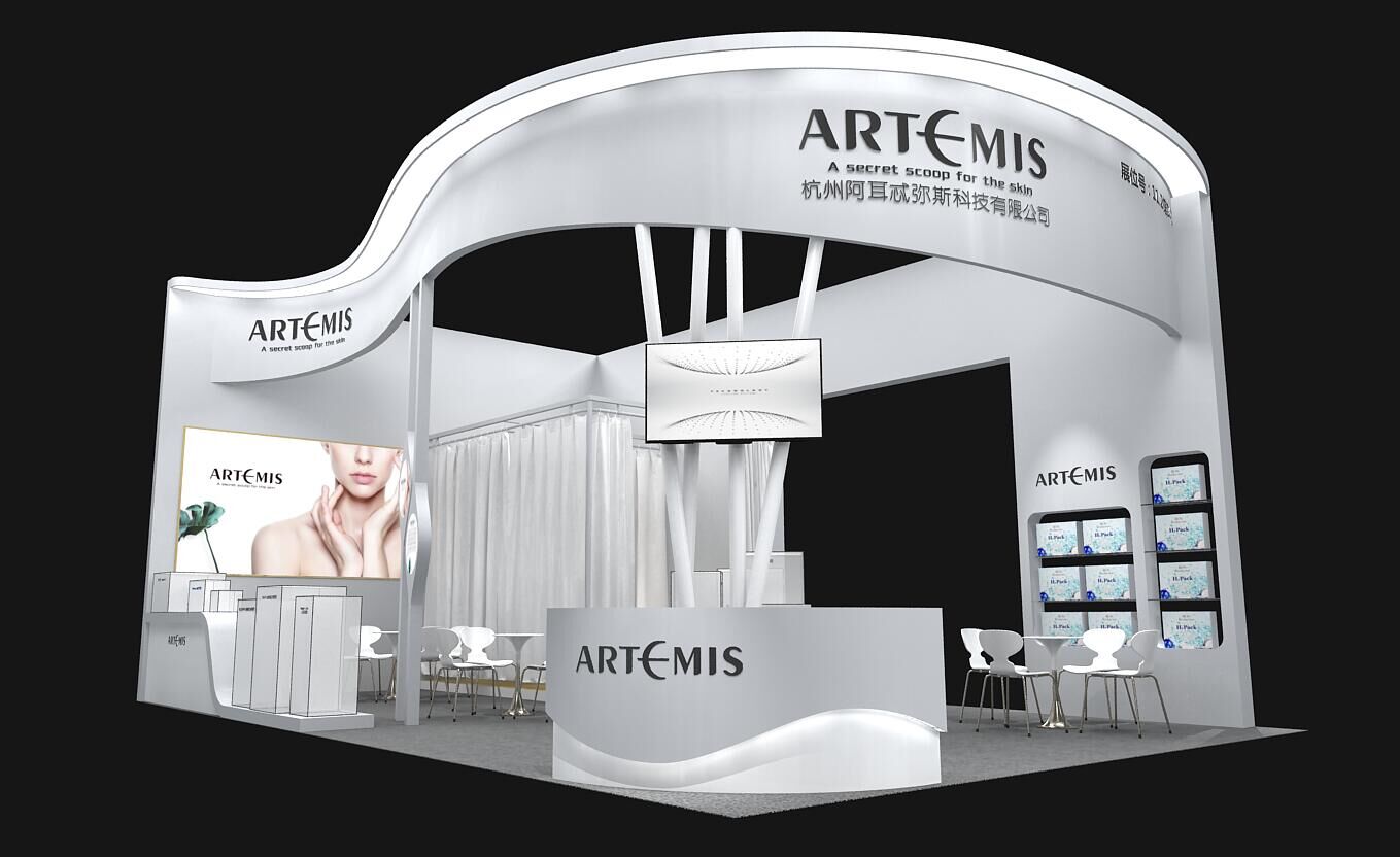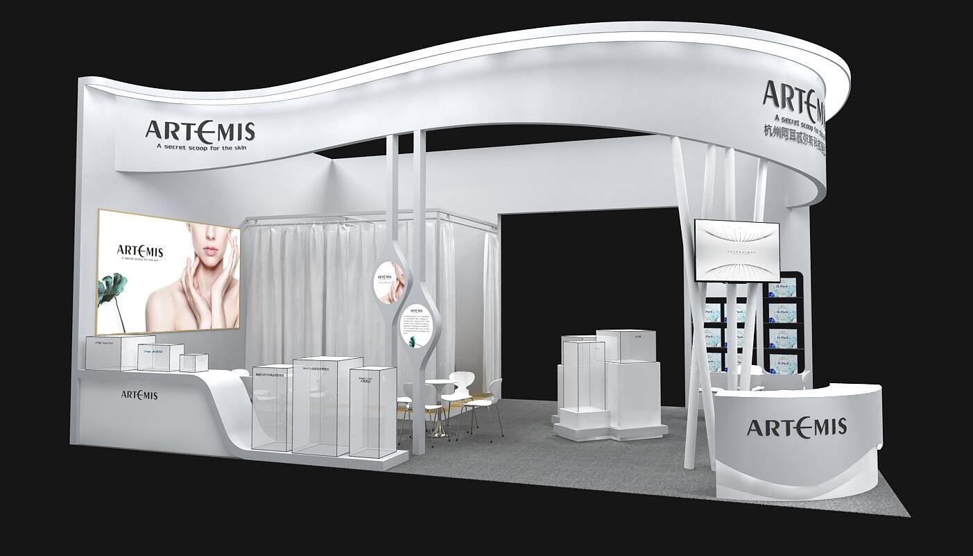 契合阿爾忒彌斯形象和產(chǎn)品特性,采用異形天花結(jié)構(gòu),再搭配燈具燈光的效果,襯托出展位簡(jiǎn)約、時(shí)尚的氛圍,突出一種現(xiàn)代、簡(jiǎn)約的時(shí)尚品味。
