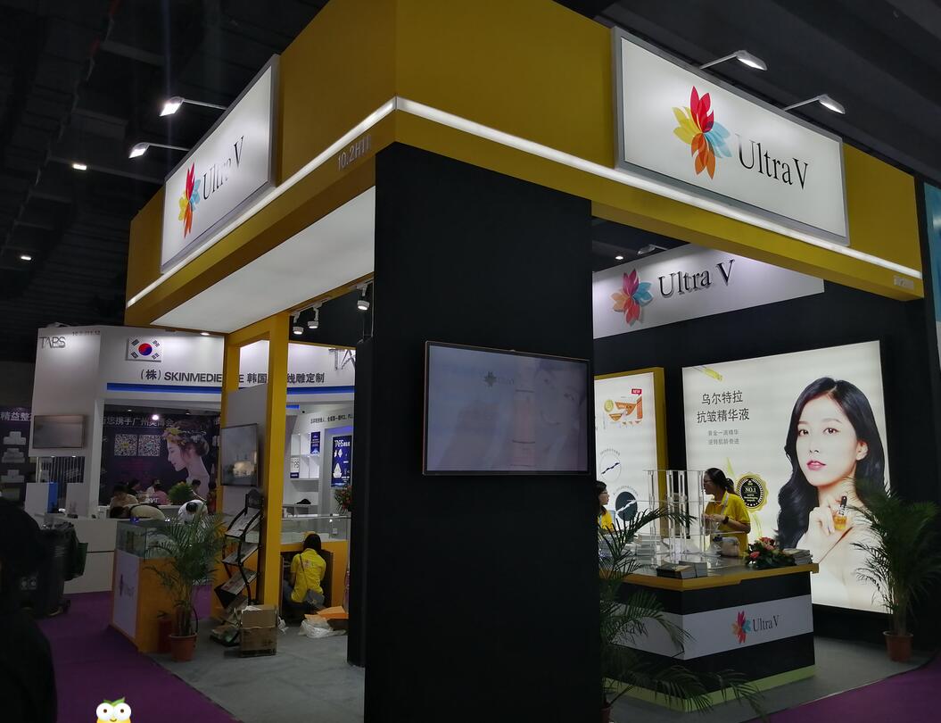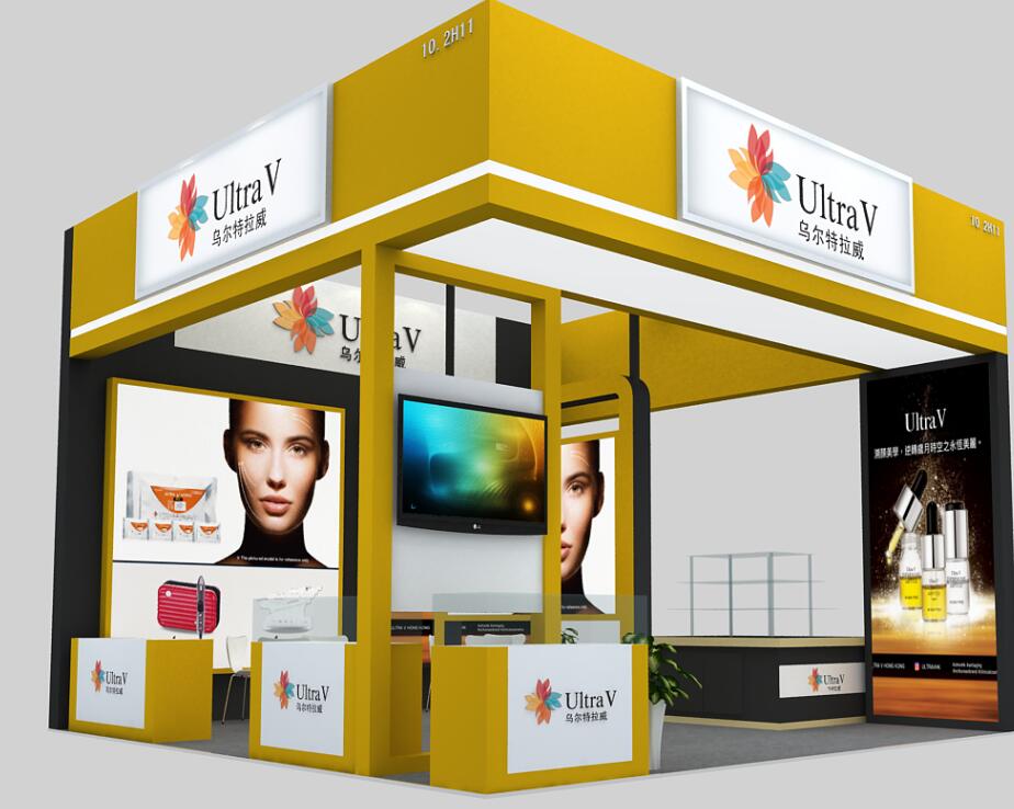 契合Ultra V的品牌形象和產(chǎn)品特性,采用弧型結(jié)構(gòu),再搭配燈具燈光的效果,襯托出展位大氣、豪華的氛圍,突出一種簡約、時尚的品味。