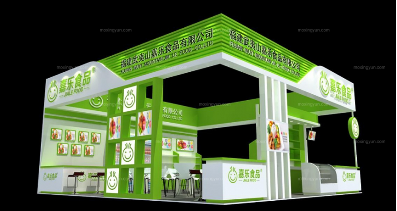 契合嘉樂食品的品牌形象和產品特性,采用線條,再搭配燈具燈光的效果,襯托出展位簡約、舒適的氛圍,突出一種現代、高端的時尚品味。