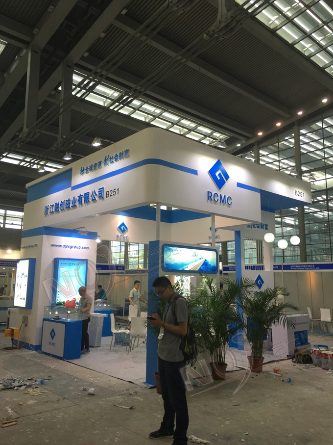 巧妙的運用藍色、白色作搭配,著重突出品牌和產(chǎn)品的展示,使整個展位時尚新穎又大氣。