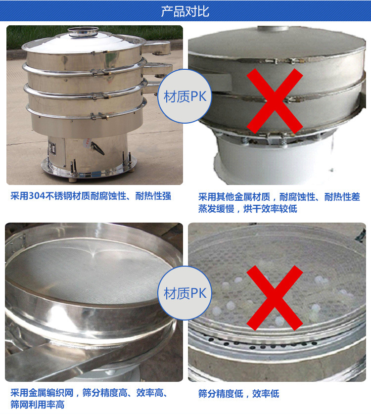 1、效率高、設計精巧耐用,任何粉類、粘液均可篩分。