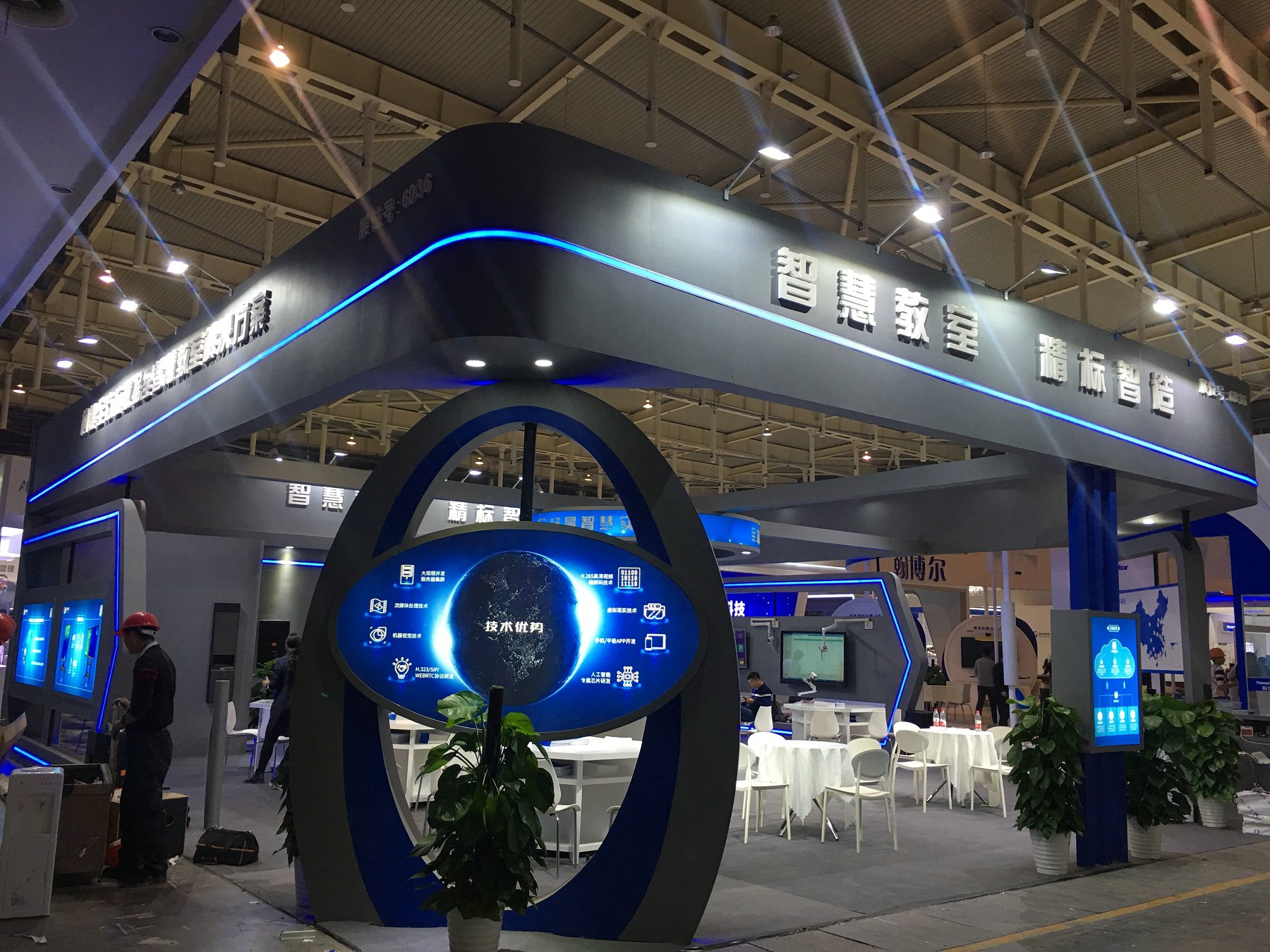 契合精標科技的品牌形象和產品特性,采用矩形結構,再搭配燈具燈光的效果,襯托出展位大氣、豪華的氛圍,突出一種簡約、時尚的品味。