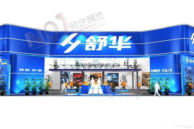 契合的舒華品牌形象和產(chǎn)品特性,采用矩形結(jié)構(gòu),再搭配燈具燈光的效果,襯托出展位高端、時(shí)尚的氛圍,突出一種現(xiàn)代、歐美的時(shí)尚品味。