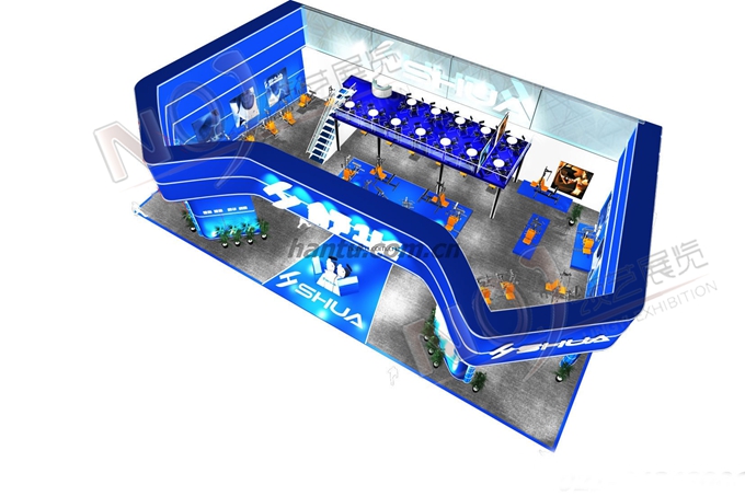 巧妙的運(yùn)用藍(lán)色、白色作搭配,著重突出品牌和產(chǎn)品的展示,使整個(gè)展位時(shí)尚新穎又大氣。