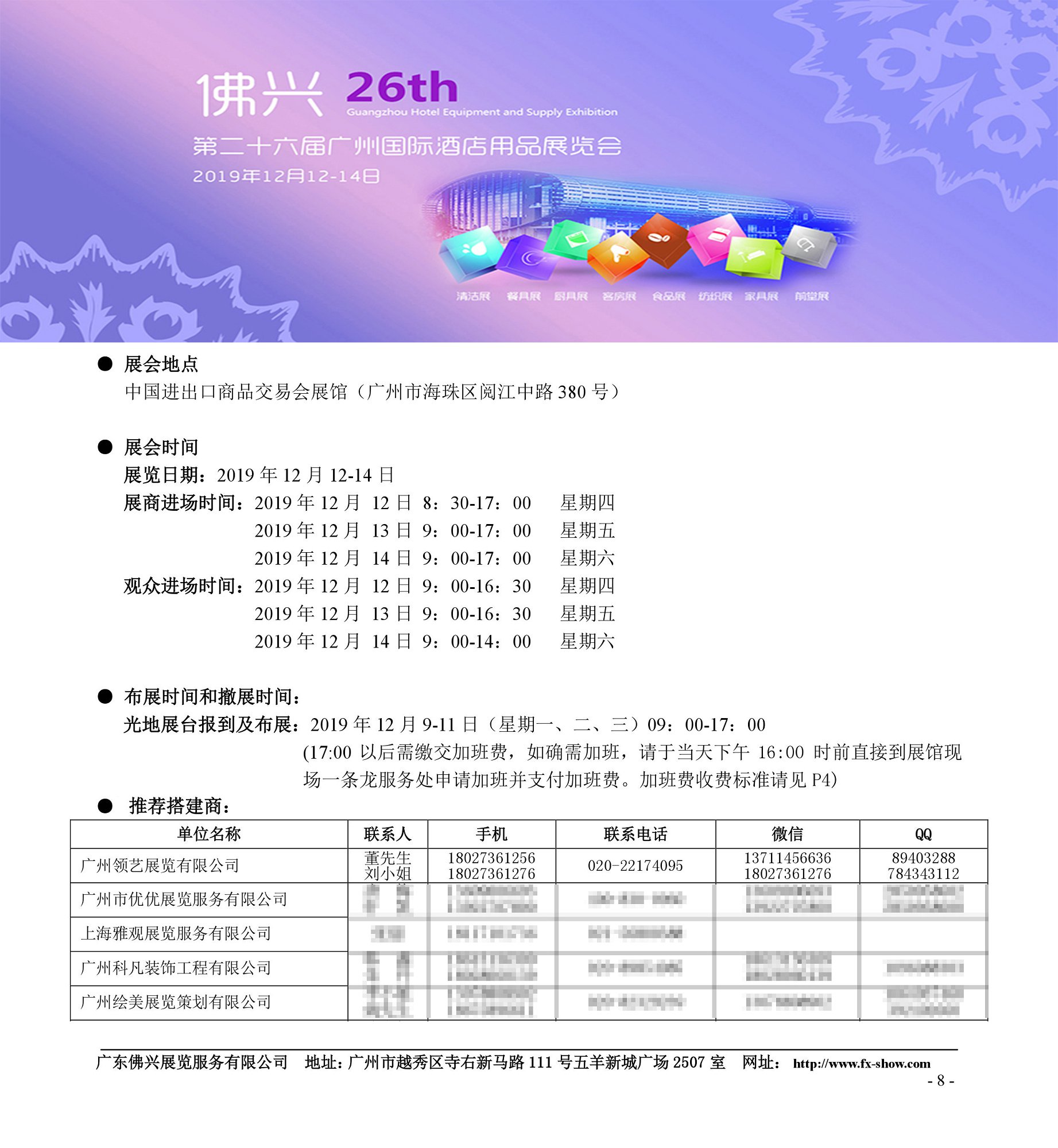 近日,我司在全體員工的共同努力下,經(jīng)過(guò)廣州酒店用品展主辦方廣東佛興展覽服務(wù)有限公司的層層審核,順利榮獲2019第二十六屆廣州酒店用品展覽會(huì)推薦搭建商資質(zhì),感謝各屆朋友的支持與厚愛!相信憑借領(lǐng)藝展覽的品牌影響力,我們將在工程搭建業(yè)務(wù)上取更多的突破與成就!領(lǐng)藝展覽專注展臺(tái)設(shè)計(jì)搭建15年,以不斷追求和超越的意識(shí)創(chuàng)造展覽行業(yè)時(shí)尚前衛(wèi)的設(shè)計(jì)風(fēng)格,以嚴(yán)格的施工質(zhì)量標(biāo)準(zhǔn)和貼心的服務(wù)意識(shí)獲得客戶的肯定。至今已經(jīng)服務(wù)超過(guò)千家企業(yè),已經(jīng)成為廣州酒店用品展參展企業(yè)的首選展臺(tái)設(shè)計(jì)搭建商,歡迎新老客戶前來(lái)咨詢洽談。咨詢電話:13711456636 微信同號(hào)。更多詳情請(qǐng)瀏覽我司官方網(wǎng)站:m.wmoeck.cn