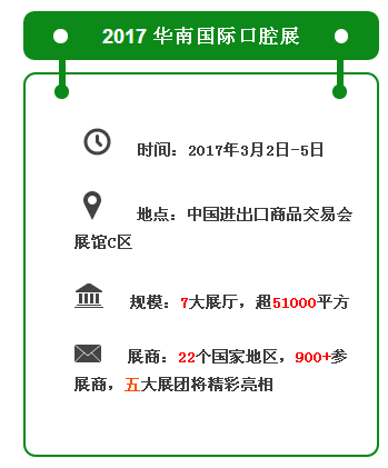 2017年3月2日-2017年3月5日,在中國進出口商品交易會展館,即將舉辦第二十二屆華南國際口腔展覽會,屆時的廣州口腔展展會設(shè)計裝修將展現(xiàn)人們對口腔的重視,為期4天的展會將迎來全球100多個國家的五萬多名口腔醫(yī)療專業(yè)人士,為各位小伙伴們做指導。