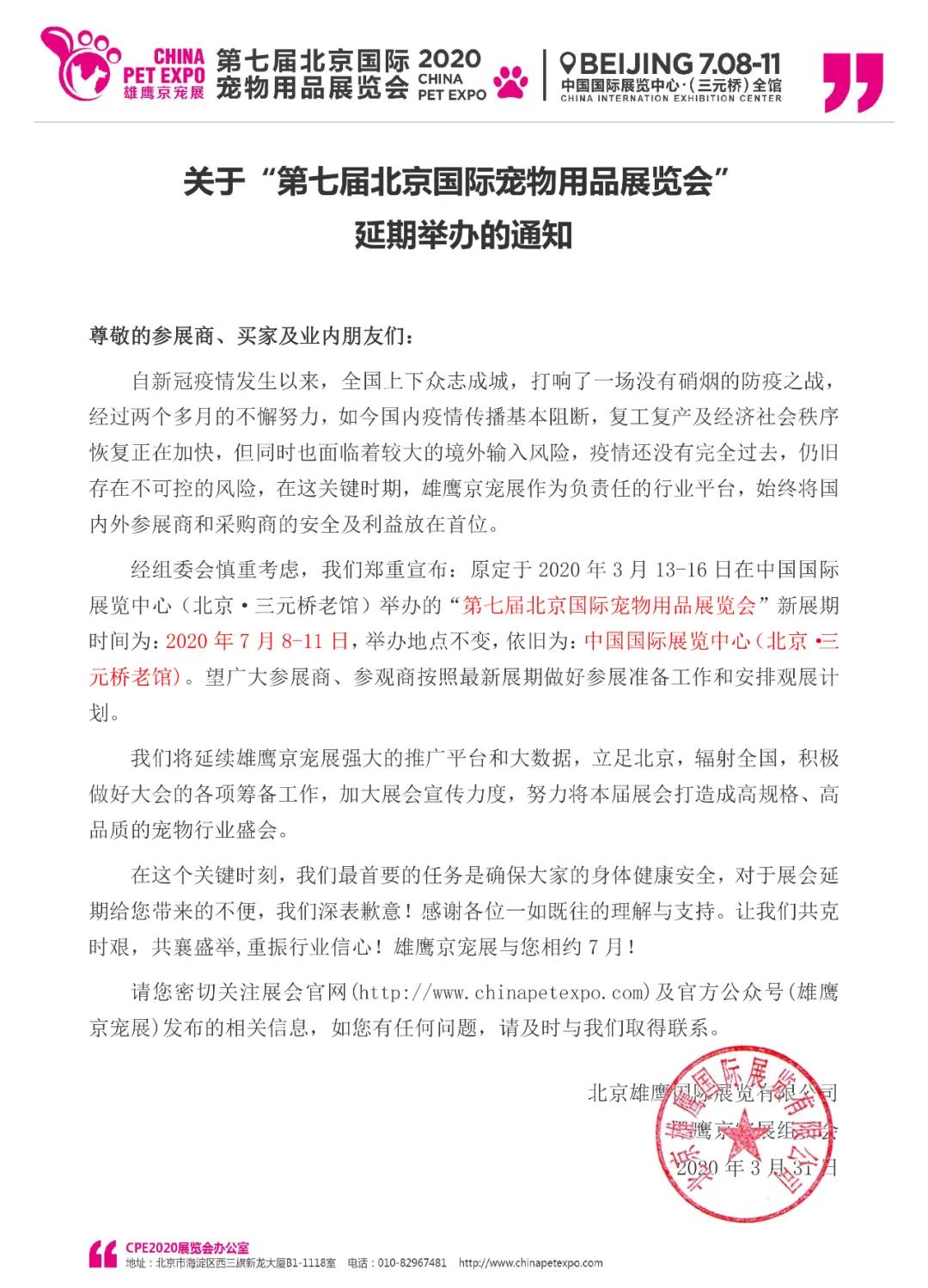 根據(jù)寵物展設(shè)計(jì)搭建公司領(lǐng)藝展覽了解到,原定于2020年3月13-16日在中國國際展覽中心(北京·三元橋老館)舉辦的“第七屆北京國際寵物用品展覽會(huì)”新展期時(shí)間為:2020年7月8-11日,舉辦地點(diǎn)不變,依舊為:中國國際展覽中心(北京·三元橋老館)。如需寵物展設(shè)計(jì)請聯(lián)系領(lǐng)藝展覽,希望我們能在寵物展搭建上為您添磚加瓦,祝各位朋友收獲多多,滿載而歸!