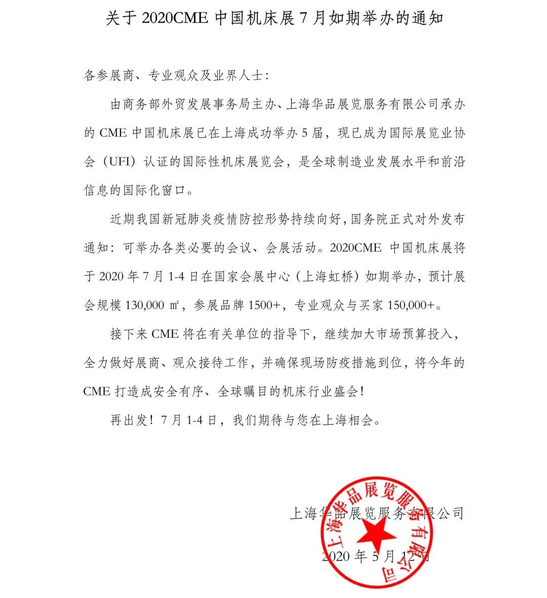 上海機(jī)床展設(shè)計(jì)搭建公司領(lǐng)藝展覽了解到,原定于2020年2月25日舉行的CME中國(guó)機(jī)床展將延期至2020年7月1-4日舉行。如需上海機(jī)床展設(shè)計(jì)請(qǐng)聯(lián)系領(lǐng)藝展覽,希望我們能在上海機(jī)床展搭建上為您添磚加瓦,祝各位朋友收獲多多,滿載而歸!