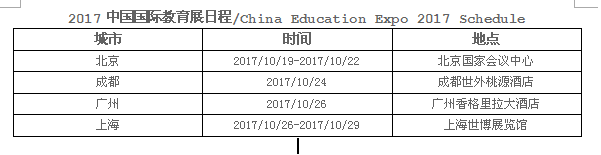 素有“留學(xué)風(fēng)向標”之稱的中國國際教育展,將于2017年10月21日至29日北京和上海等地舉辦。