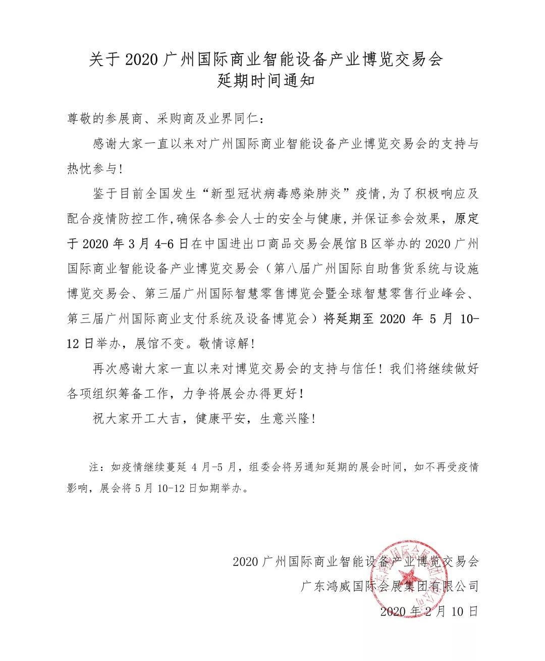 根據(jù)廣州智慧零售展設(shè)計(jì)搭建公司領(lǐng)藝展覽解到,原定于 2020 年 3 月 4-6 日在中國進(jìn)出口商品交易會展館 B 區(qū)舉辦的 2020 廣州國際商業(yè)智能設(shè)備產(chǎn)業(yè)博覽交易會(第八屆廣州國際自助售貨系統(tǒng)與設(shè)施博覽交易會、第三屆廣州國際智慧零售博覽會暨全球智慧零售行業(yè)峰會、 第三屆廣州國際商業(yè)支付系統(tǒng)及設(shè)備博覽會)將延期至 2020 年 5 月 10- 12 日舉辦。如需廣州智慧零售展設(shè)計(jì)請聯(lián)系領(lǐng)藝展覽,希望我們能在廣州智慧零售展搭建上為您添磚加瓦,祝各位朋友收獲多多,滿載而歸!