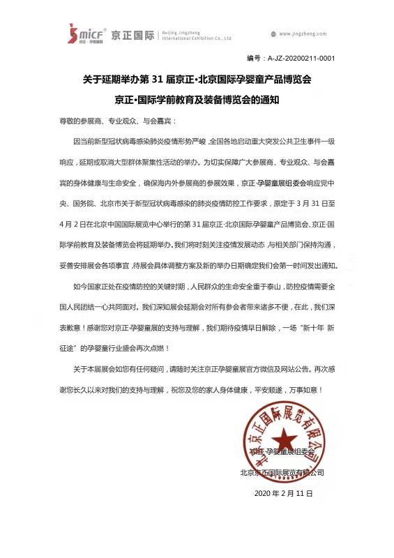根據(jù)北京孕嬰童展設(shè)計(jì)搭建公司領(lǐng)藝展覽了解到,原定于2020年3月31日至4月2日在北京中國(guó)國(guó)際展覽中心舉辦的第31屆京正·北京國(guó)際孕嬰童產(chǎn)品博覽會(huì)將延期舉辦,具體展覽時(shí)間將視疫情另行通知。如需北京孕嬰童展展臺(tái)設(shè)計(jì)請(qǐng)聯(lián)系領(lǐng)藝展覽,希望我們能在北京孕嬰童展展臺(tái)搭建上為您添磚加瓦,祝各位朋友收獲多多,滿載而歸!