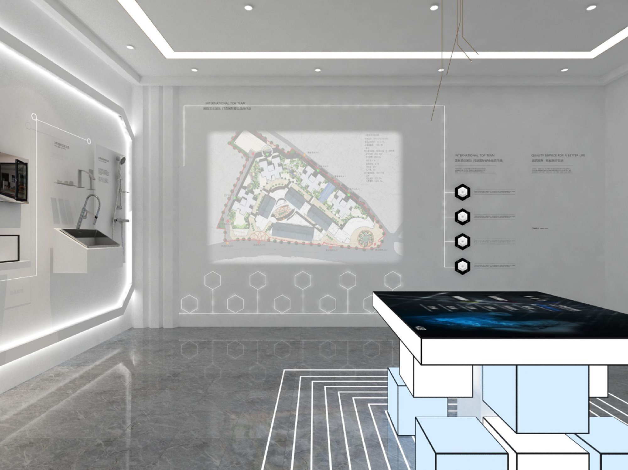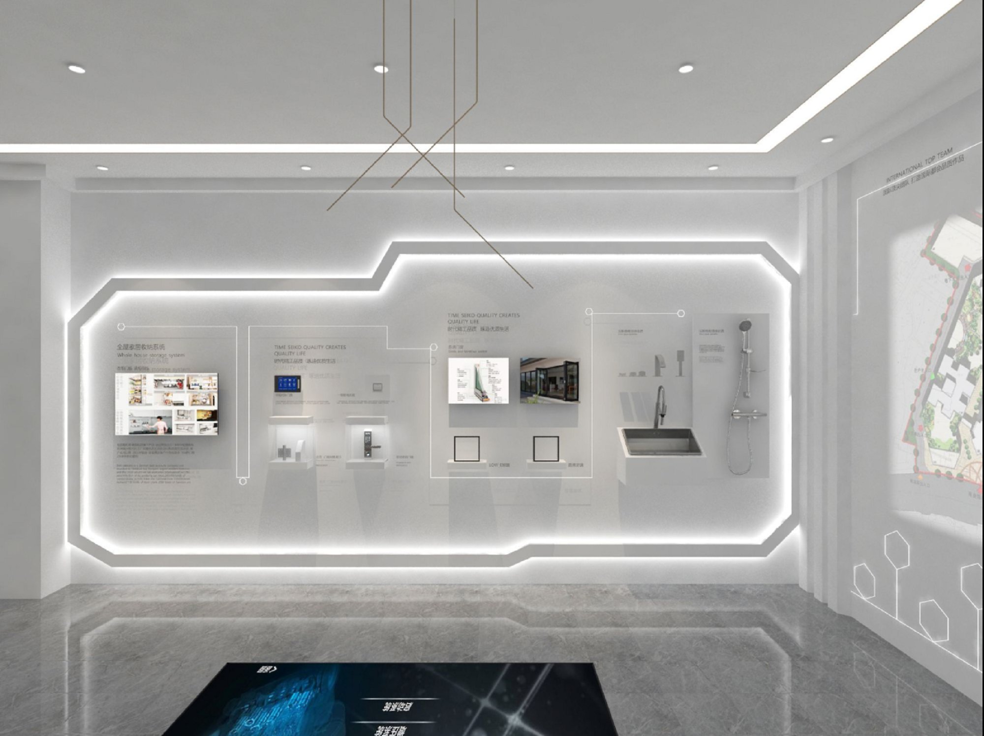 契合萬科的品牌形象和產(chǎn)品特性,采用開放式結構進行合理的分區(qū),再搭配燈具燈光的效果,襯托出展廳大氣、豪華的氛圍,突出一種簡約、時尚的品味。