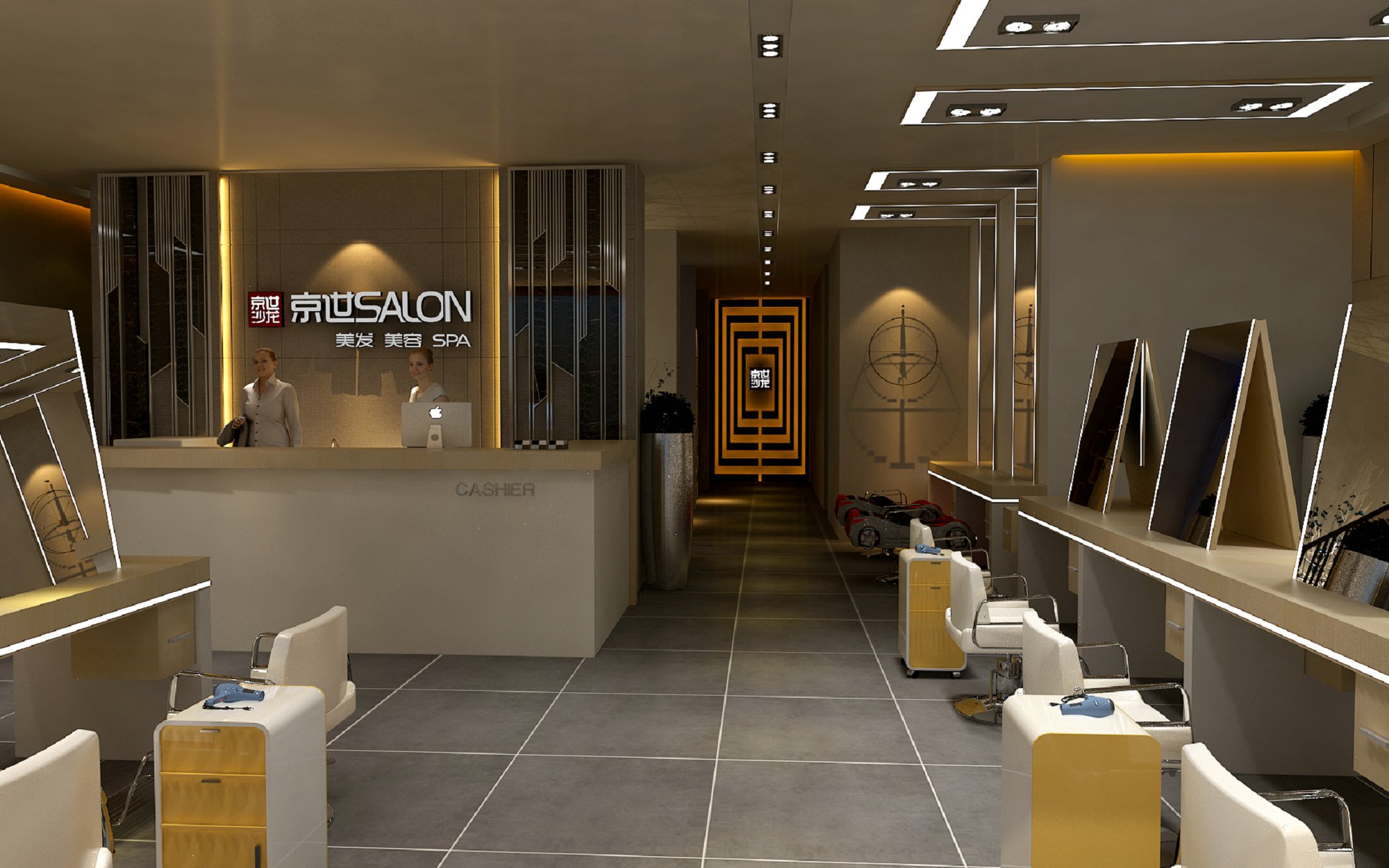 契合京世的品牌形象和產(chǎn)品特性,采用開放式結(jié)構(gòu)進(jìn)行合理的分區(qū),再搭配燈具燈光的效果,襯托出展廳大氣、豪華的氛圍,突出一種簡(jiǎn)約、時(shí)尚的品味。