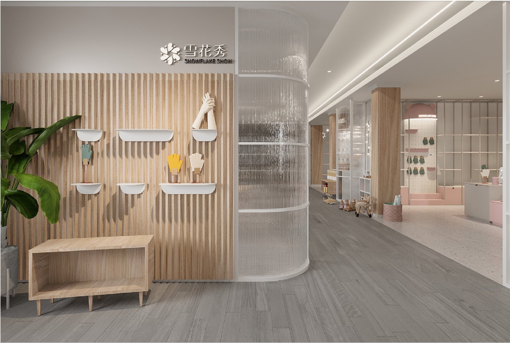 契合雪花秀的品牌形象和產(chǎn)品特性,采用開放式結(jié)構(gòu)進(jìn)行合理的分區(qū),再搭配燈具燈光的效果,襯托出展廳大氣、豪華的氛圍,突出一種簡約、時(shí)尚的品味。