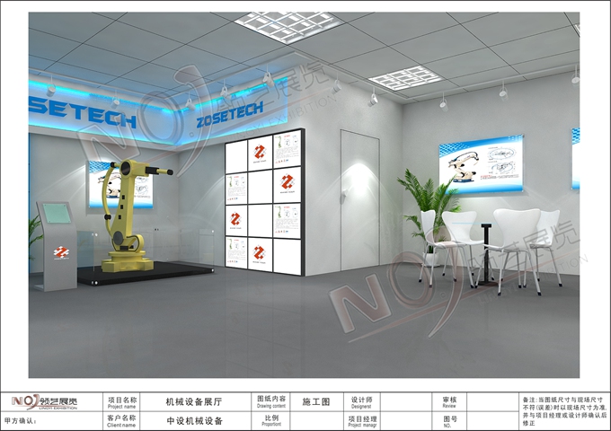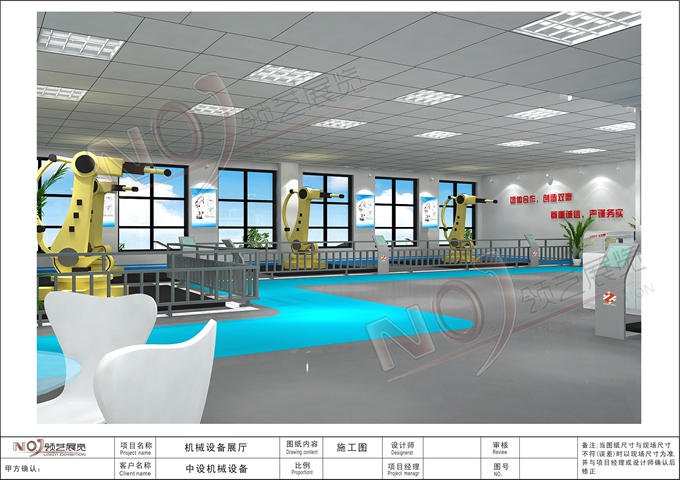 契合的中設(shè)機(jī)械品牌形象和產(chǎn)品特性,采用矩形結(jié)構(gòu),再搭配燈具燈光的效果,襯托出展位高端、時(shí)尚的氛圍,突出一種現(xiàn)代、大氣的時(shí)尚品味。