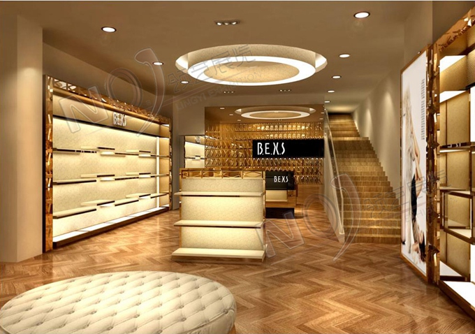 契合的波爾西斯品牌形象和產(chǎn)品特性,采用矩形結(jié)構(gòu),再搭配燈具燈光的效果,襯托出展位高端、時(shí)尚的氛圍,突出一種現(xiàn)代、歐美的時(shí)尚品味。