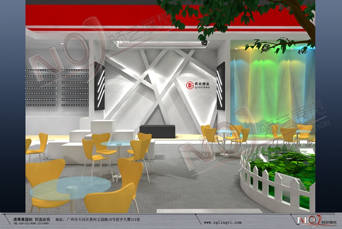 契合奇光的品牌形象和產(chǎn)品特性,采用矩形結(jié)構(gòu),再搭配燈具燈光的效果,襯托出展位時(shí)尚、簡(jiǎn)約的氛圍,突出一種現(xiàn)代、活力的時(shí)尚品味。