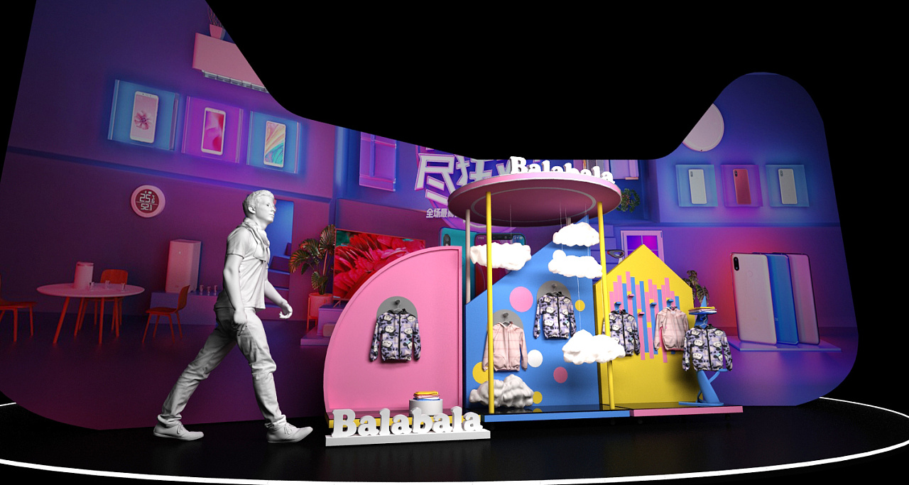 契合巴拉巴拉的品牌形象和產(chǎn)品特性,采用開(kāi)放式結(jié)構(gòu),再搭配燈具燈光的效果,襯托出直播間大氣、豪華的氛圍,突出一種簡(jiǎn)約、時(shí)尚的品味。