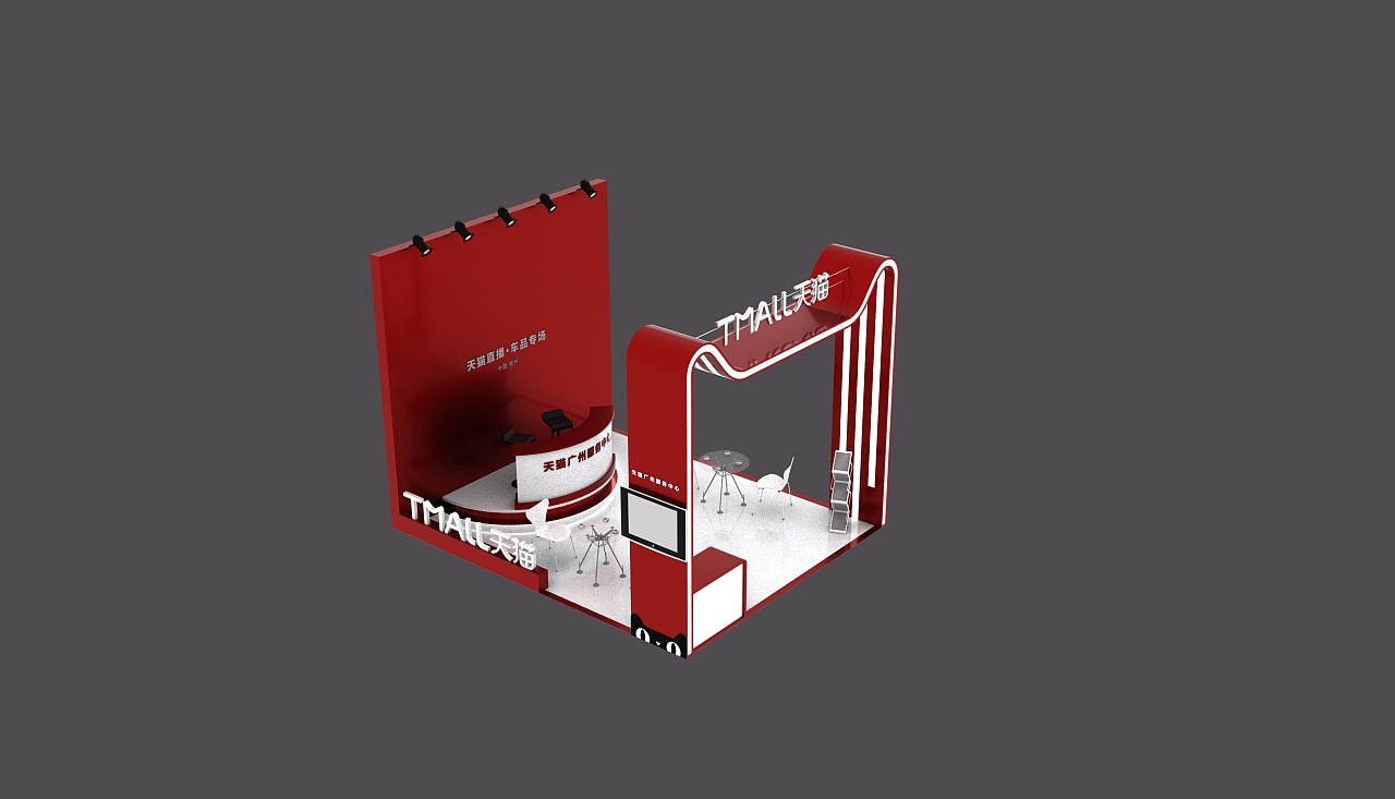 契合天貓的品牌形象和產品特性,采用開放式結構進行合理的分區(qū),再搭配燈具燈光的效果,襯托出展廳大氣、豪華的氛圍,突出一種簡約、時尚的品味。